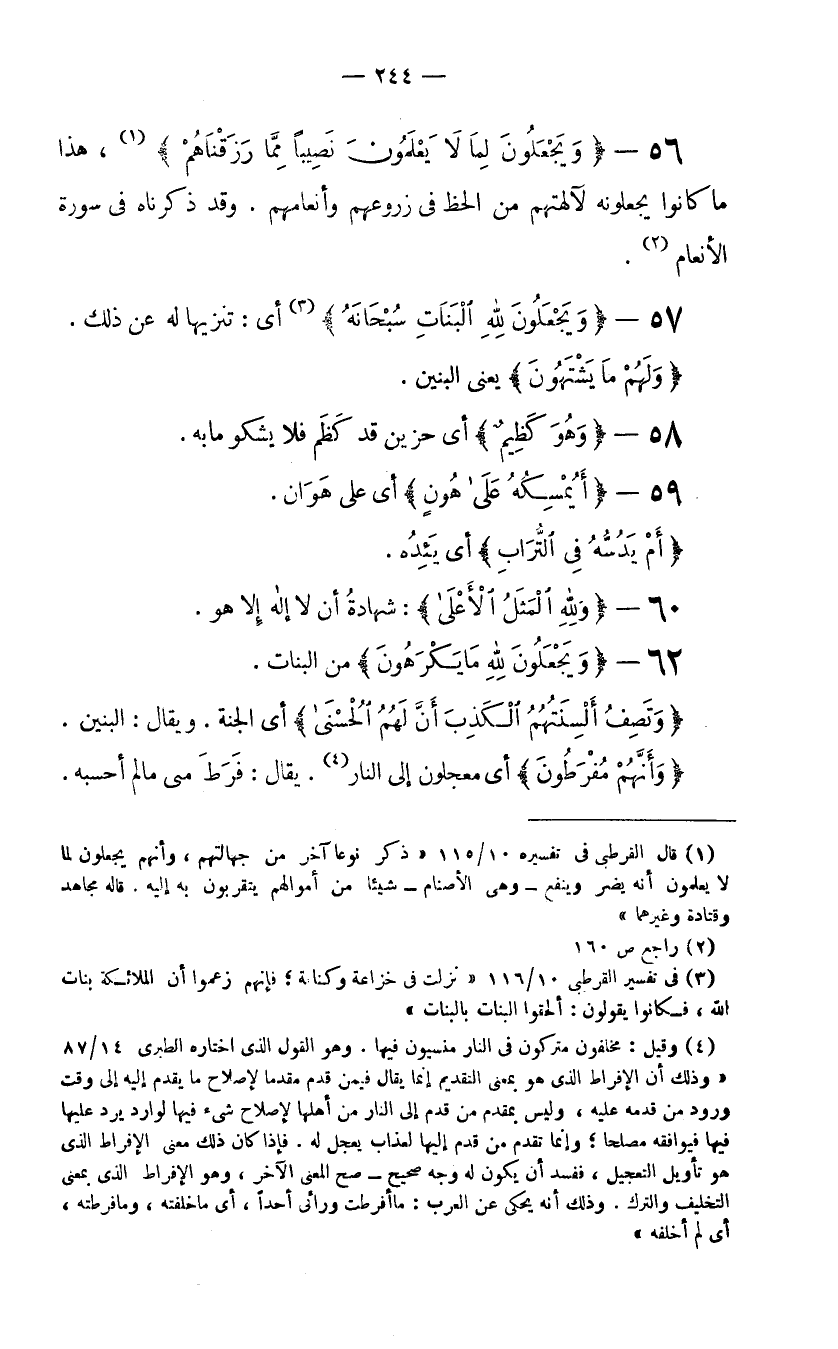 57- {وَيَجْعَلُونَ لِلَّهِ الْبَنَاتِ سُبْحَانَهُ} (3) . أي تنزيها له عن ذلك.