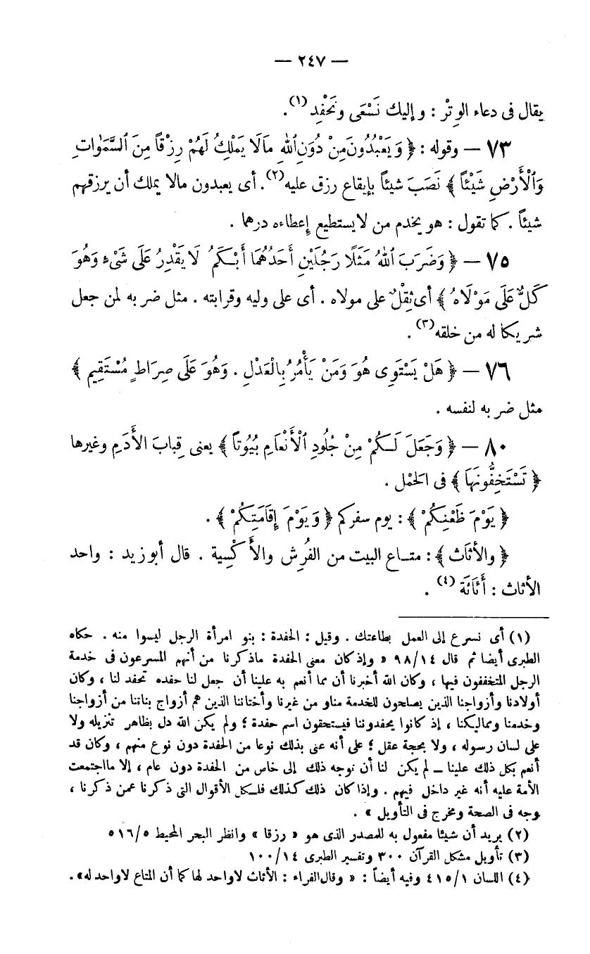(3) تأويل مشكل القرآن 300 وتفسير الطبري 14/100.