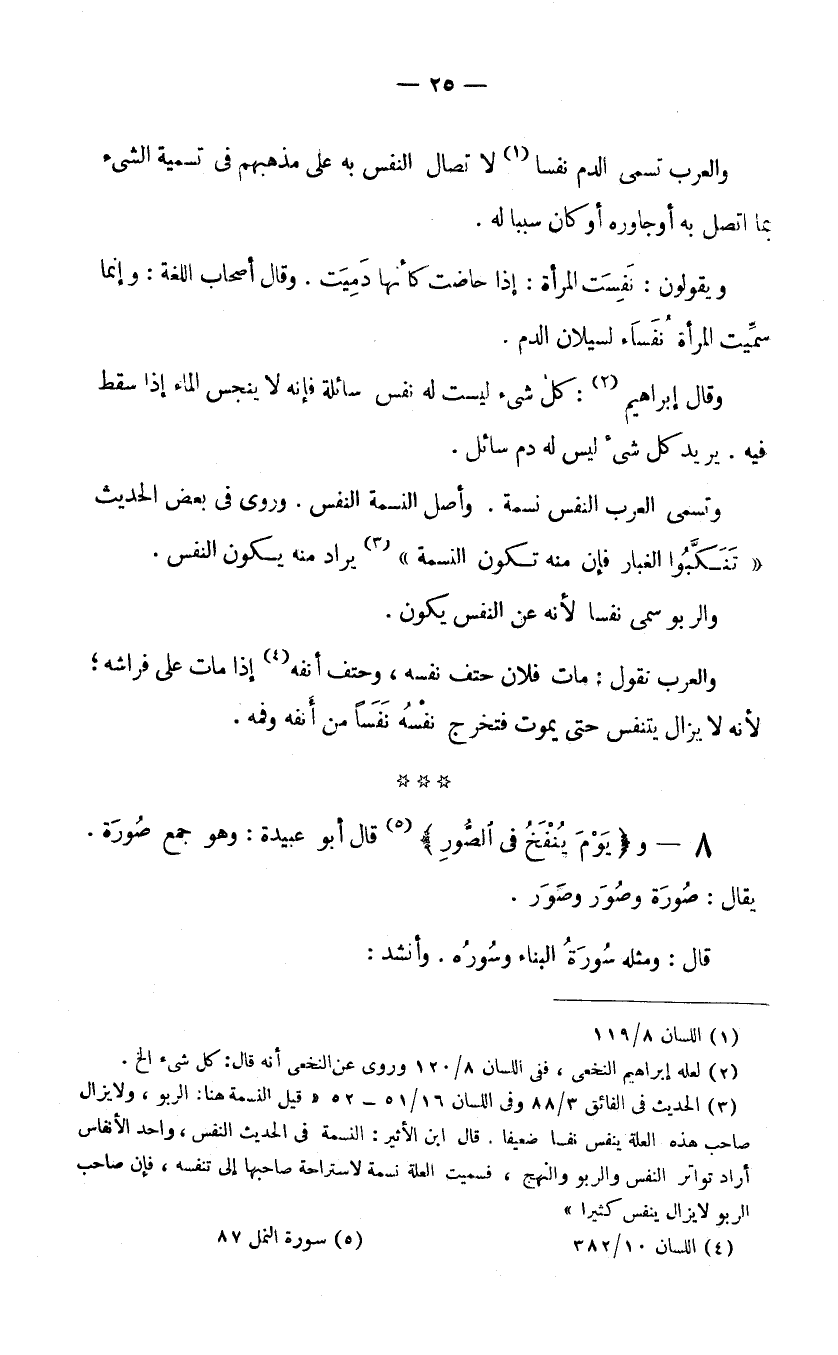 8- و {يَوْمَ يُنْفَخُ فِي الصُّورِ} (3) قال أبو عبيدة: وهو جمع صُورَة. يقال: صُورَة وصُوَر وصَوَر.