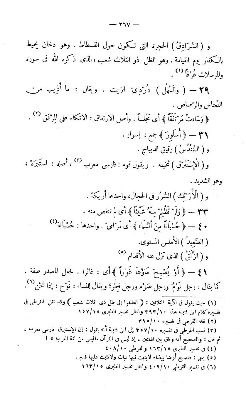 (3) نسب القرطبي في تفسيره 10/357 إلى ابن قتيبة أنه يقول: إن الإستبرق فارسي معرب، ثم قال: والصحيح أنه وفاق بين اللغتين، إذ ليس في القرآن ما ليس من لغة العرب "!.
