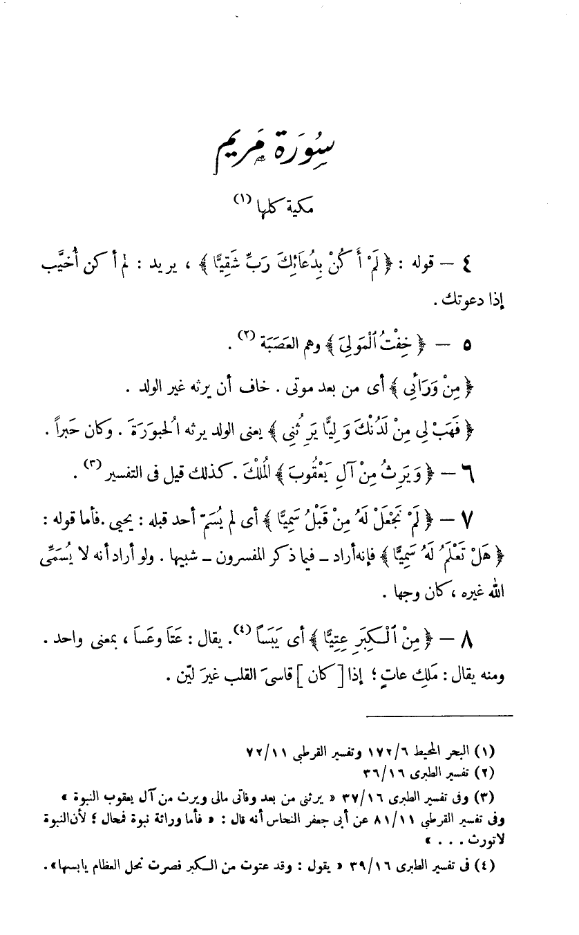 (1) وفي تفسير الطبري 16/37 "يرثني من بعد وفاتي مالي ويرث من آل يعقوب النبوة " وفي تفسير القرطبي 11/81 عن أبي جعفر النحاس أنه قال: "فأما وراثة نبوة فمحال؛ لأن النبوة لا تورث ... ".