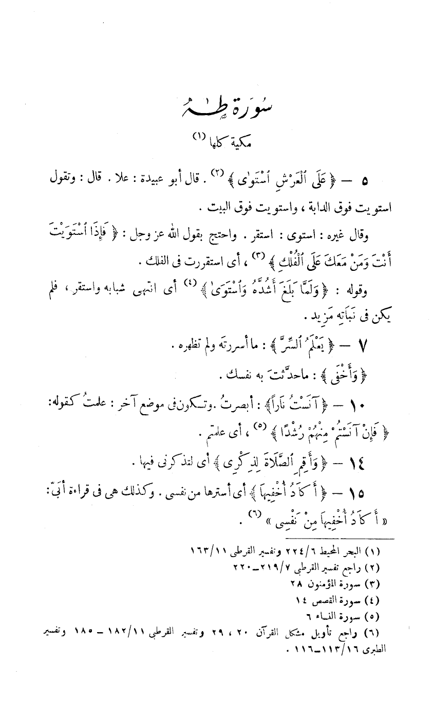 5- {عَلَى الْعَرْشِ اسْتَوَى} قال أبو عبيدة: علا. قال: وتقول استويت فوق الدابة، واستويت فوق البيت.