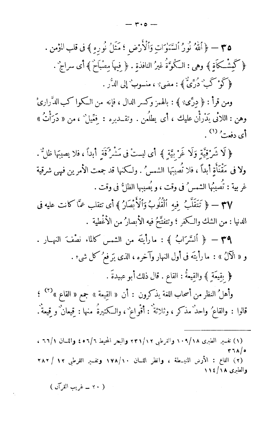 (1) القاع: الأرض المنبسطة، وانظر اللسان 10/178 وتفسير القرطبي 12/282 والطبري 18/114.
