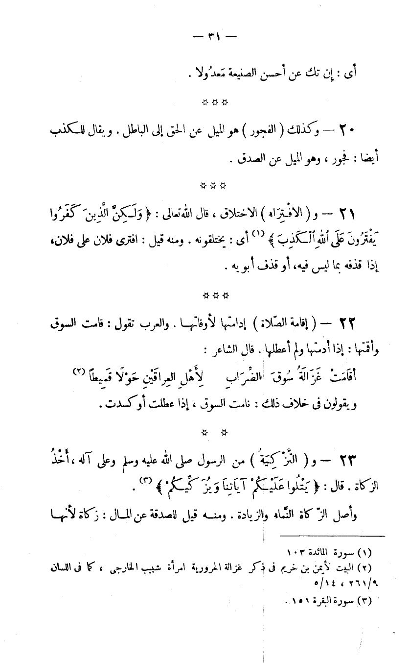 20- وكذلك (الفجور) هو الميل عن الحق إلى الباطل. ويقال للكذب أيضا: فجور، وهو الميل عن الصدق.