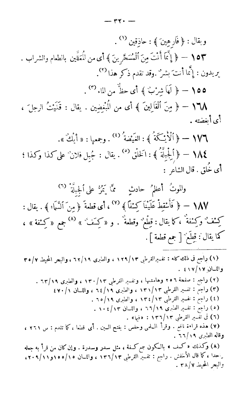 (1) راجع في ذلك كله: تفسير القرطبي 13/129، والطبري 19/62، والبحر المحيط 7/35 واللسان 17/417.