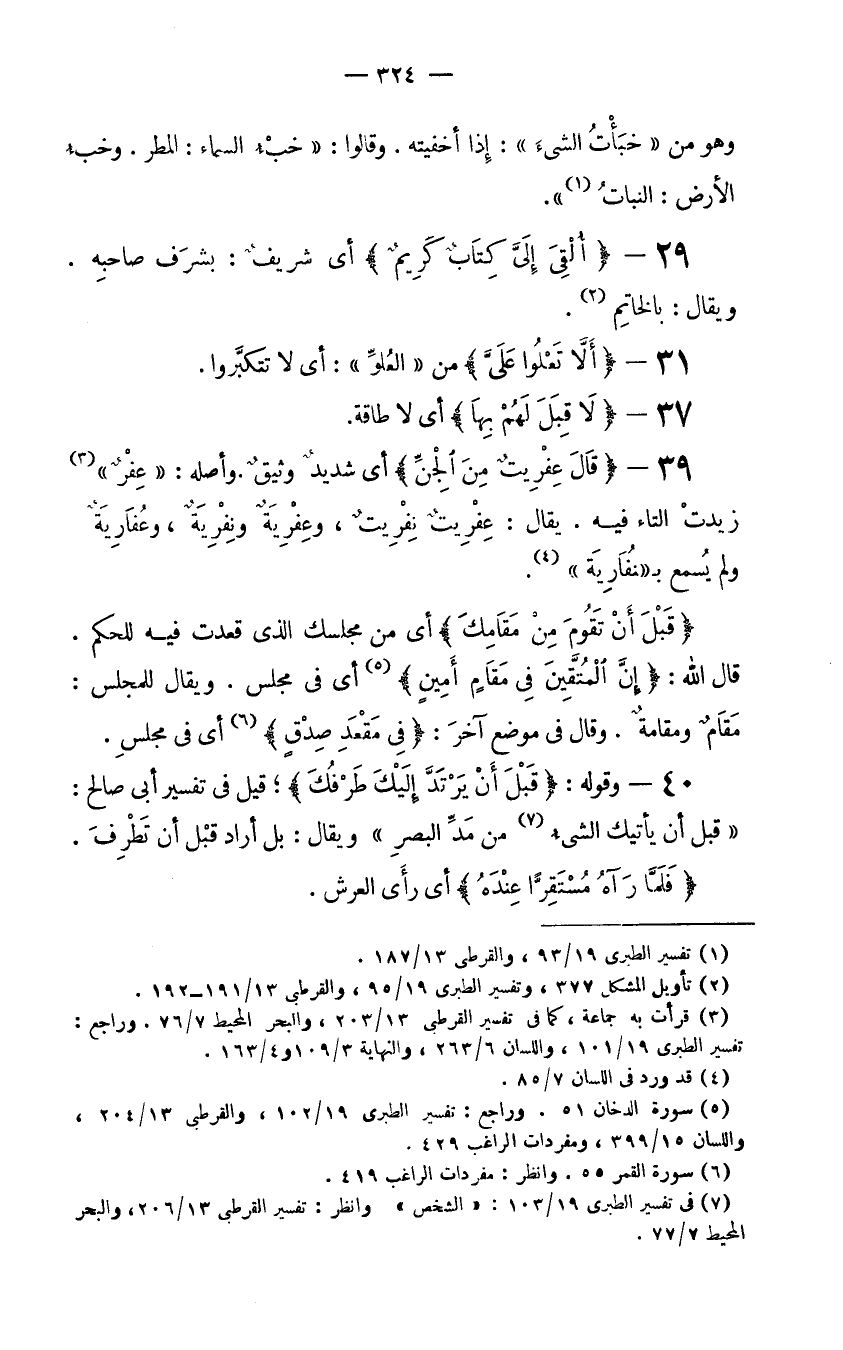 (5) سورة الدخان 51، وراجع: تفسير الطبري 19/102، والقرطبي 13/204، واللسان 15/399، ومفردات الراغب 429.