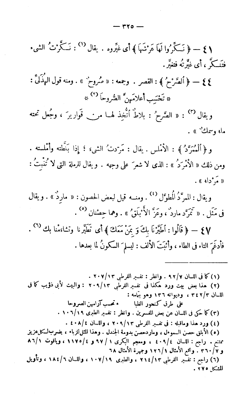 (6) راجع: تفسير القرطبي 13/214، والطبري 19/107، واللسان 6/184، وتأويل المشكل 275.