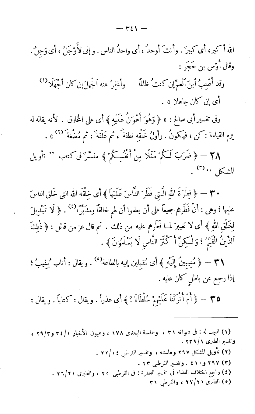 (4) راجع اختلاف العلماء في تفسير الفطرة: في القرطبي 14/25، والطبري 21/26.