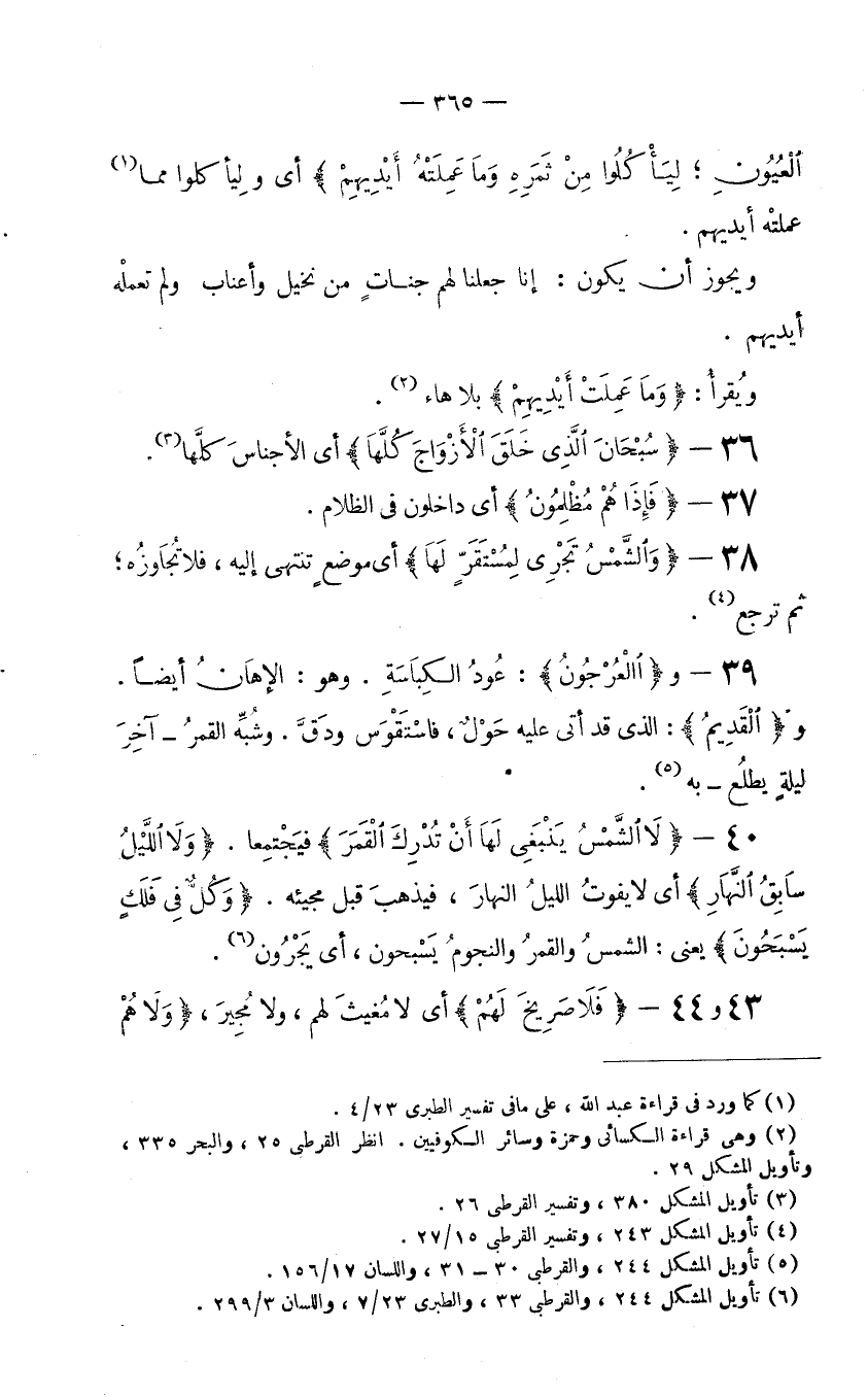 39- و (الْعُرْجُونُ) عُودُ الكِبَاسَةِ. وهو: الإهَانُ أيضًا. و (الْقَدِيمِ) الذي قد أتى عليه حَوْلٌ فاستَقْوَس ودَقَّ. وشُبِّهَ القمرُ -آخِرَ ليلةٍ يطلُع- به (5) .