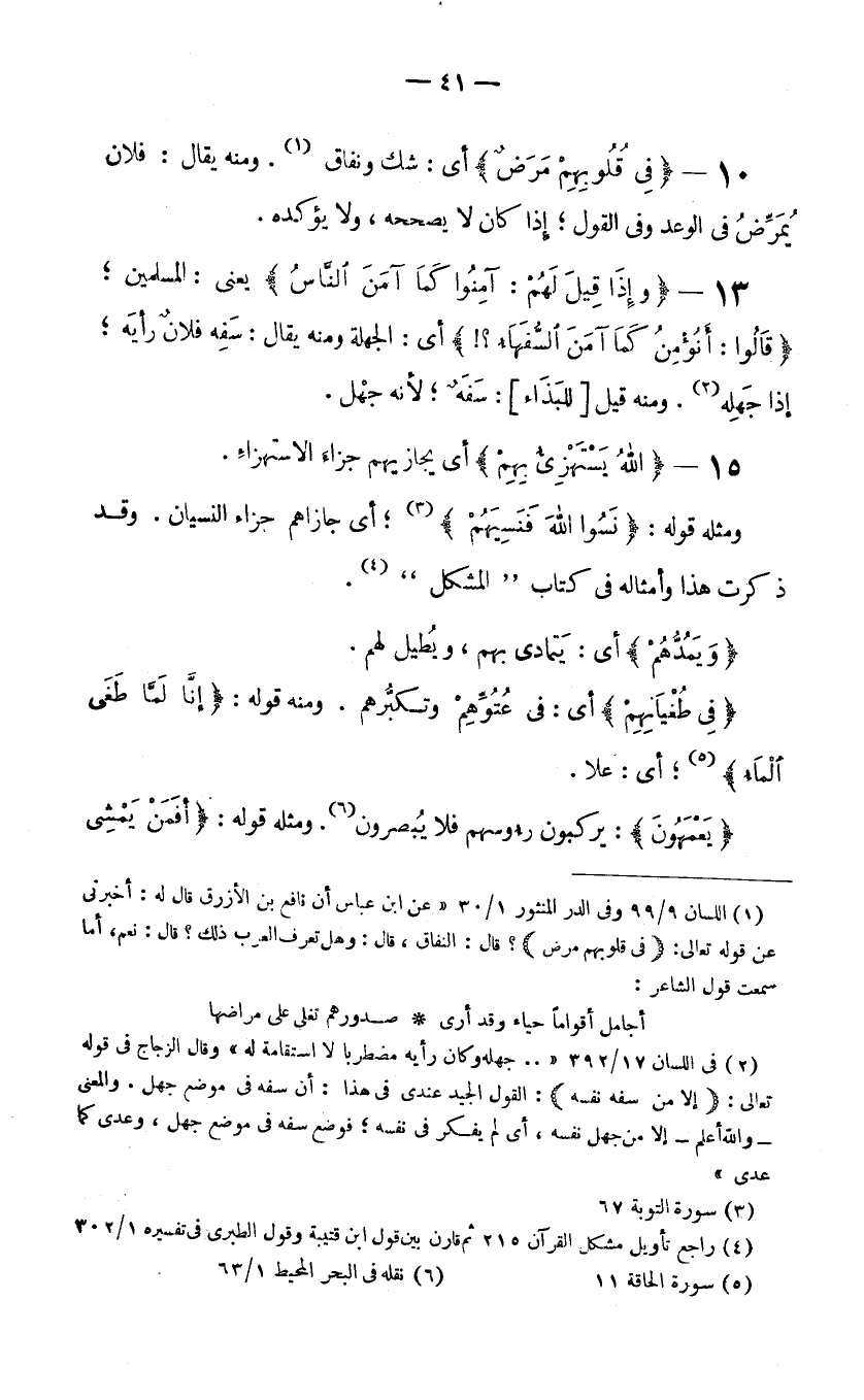 (4) راجع تأويل مشكل القرآن 215 ثم قارن بين قول ابن قتيبة وقول الطبري في تفسيره 1/302.