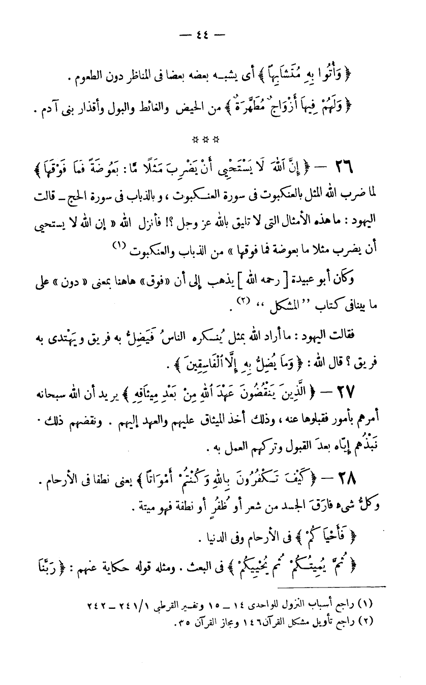 (2) راجع تأويل مشكل القرآن 146 ومجاز القرآن 35.