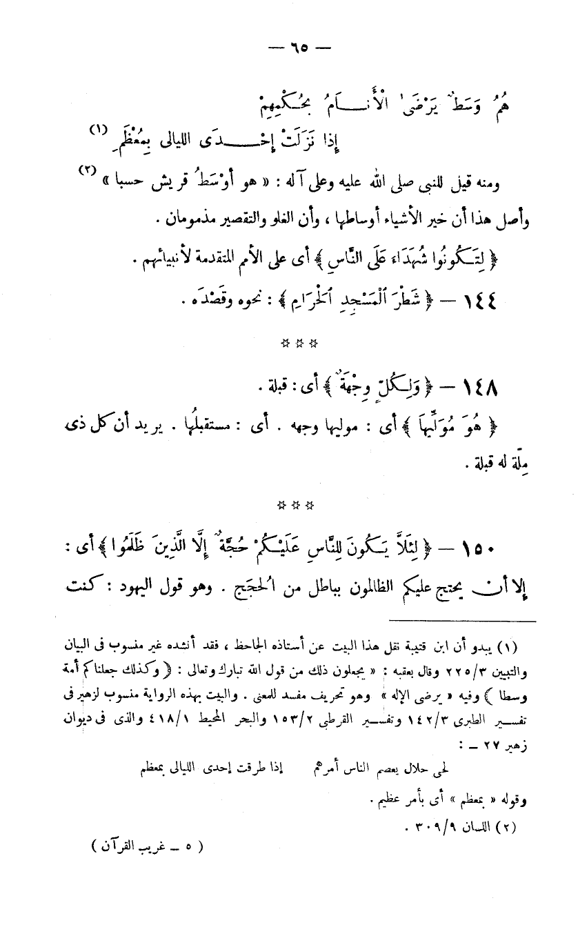 (1) يبدو أن ابن قتيبة نقل هذا البيت عن أستاذه الجاحظ، فقد أنشده غير منسوب في البيان والتبيين 3/225 وقال بعقبه: "يجعلون ذلك من قول الله تبارك وتعالى: (وكذلك جعلناكم أمة وسطا) وفيه "يرضى الإله" وهو تحريف مفسد للمعنى. والبيت بهذه الرواية منسوب لزهير في تفسير الطبري 3/142 وتفسير القرطبي 2/153 والبحر المحيط 1/418 والذي في ديوان زهير 27 -: