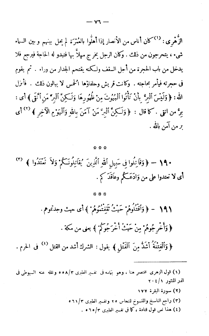 (1) قول الزهري مختصر هنا، وهو بتمامه في تفسير الطبري 3/558 ونقله عنه السيوطي في الدر المنثور 1/204.