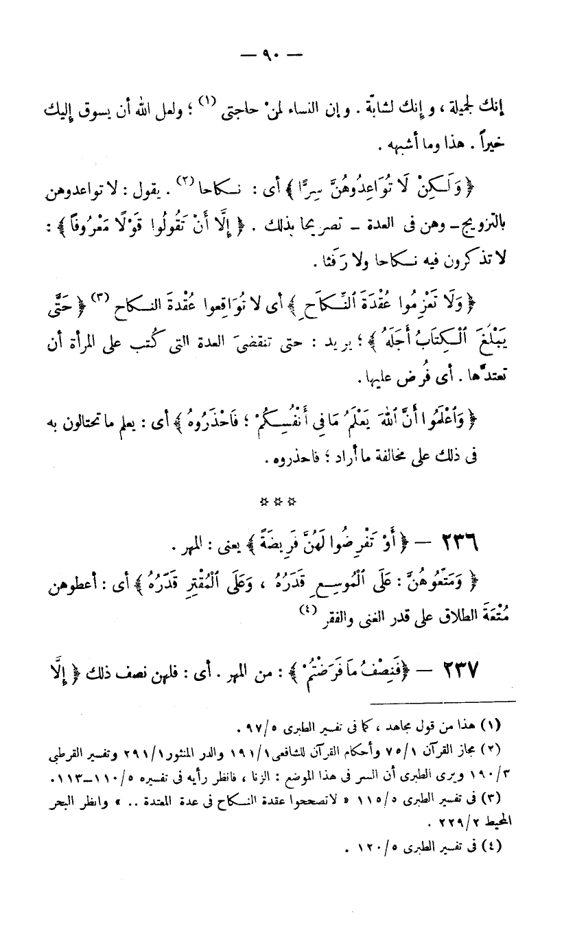 (3) في تفسير الطبري 5/115 "لا تصححوا عقدة النكاح في عدة المعتدة.." وانظر البحر المحيط 2/229.