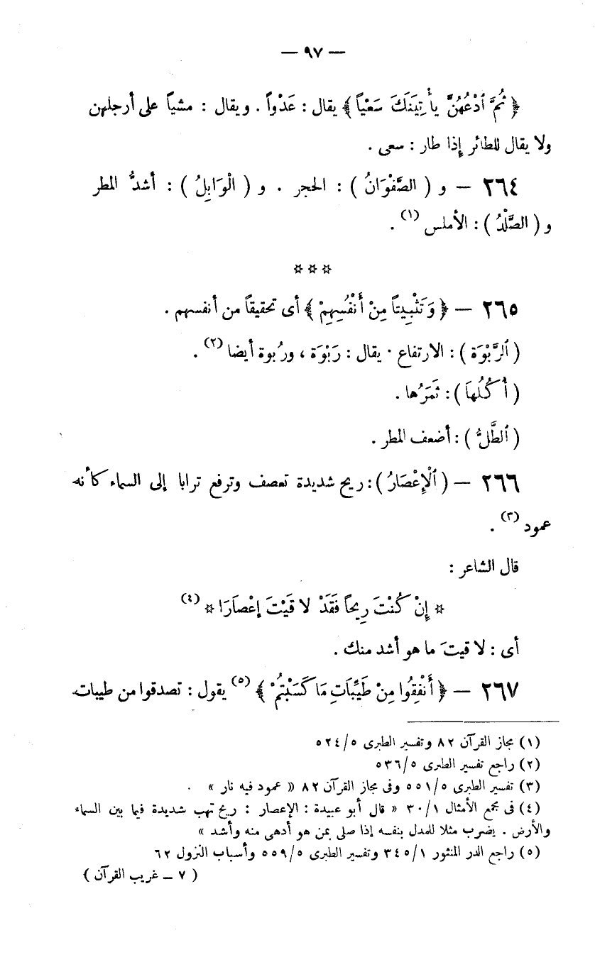 264 - و (الصَّفْوَانُ) : الحجر. و (الوَابِلُ) : أشدُّ المطر و (الصَّلْدُ) : الأملس.