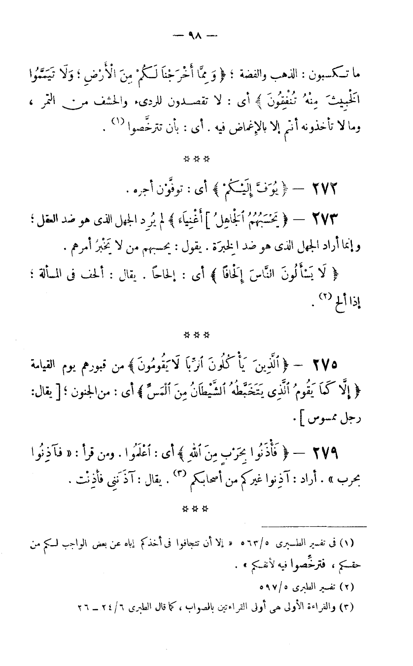 275- {الَّذِينَ يَأْكُلُونَ الرِّبَا لا يَقُومُونَ} من قبورهم يوم القيامة.