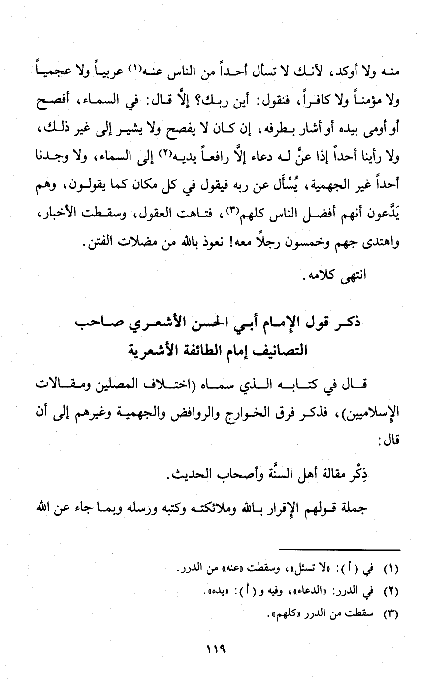 ذكر قول الإمام أبي الحسن الأشعري صاحب