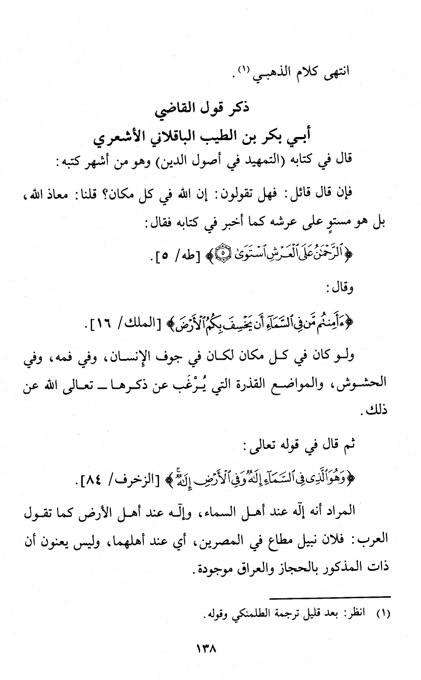 قال في كتابه (التمهيد في أصول الدين) وهو من أشهر كتبه: