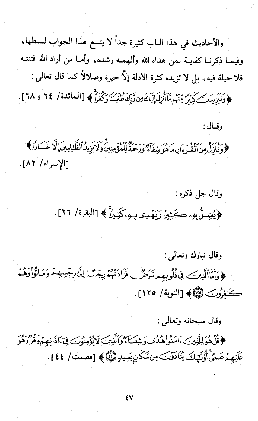 وقال: {وَنُنَزِّلُ مِنَ الْقُرْآنِ مَا هُوَ شِفَاءٌ وَرَحْمَةٌ لِلْمُؤْمِنِينَ وَلَا يَزِيدُ الظَّالِمِينَ إِلَّا خَسَارًا}