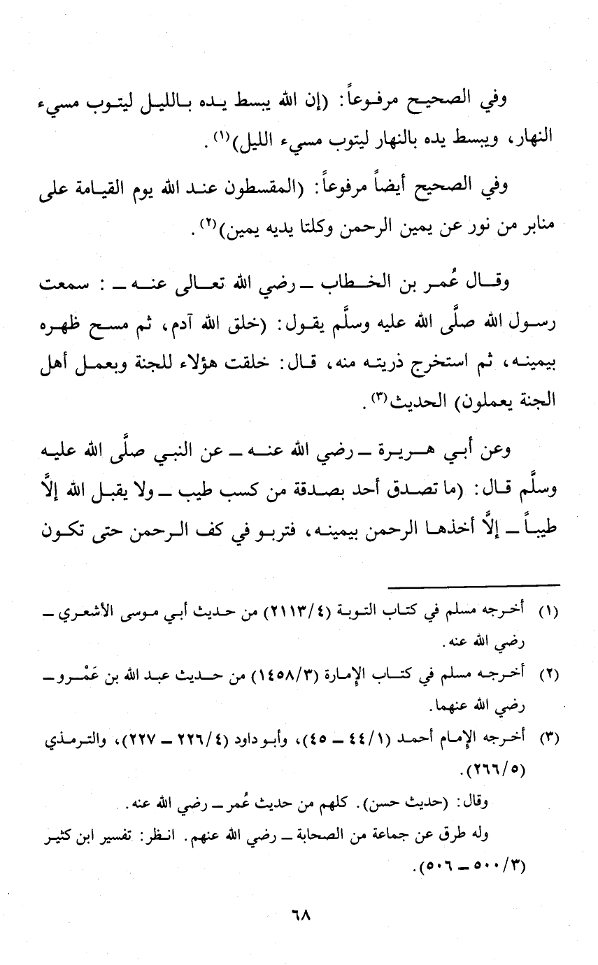 وفي الصحيح أيضا مرفوعا: «المقسطون عند الله يوم القيامة على منابر من نور عن يمين الرحمن، وكلتا يديه يمين» .