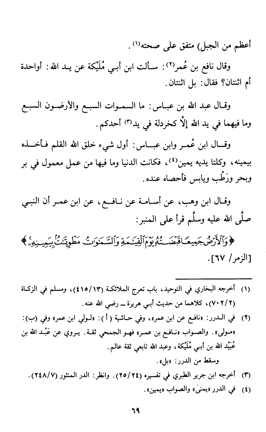 وقال نافع بن عمر: سألت ابن أبي مليكة عن "يد الله": أواحدة أو اثنتان؟ فقال: بل اثنتان.