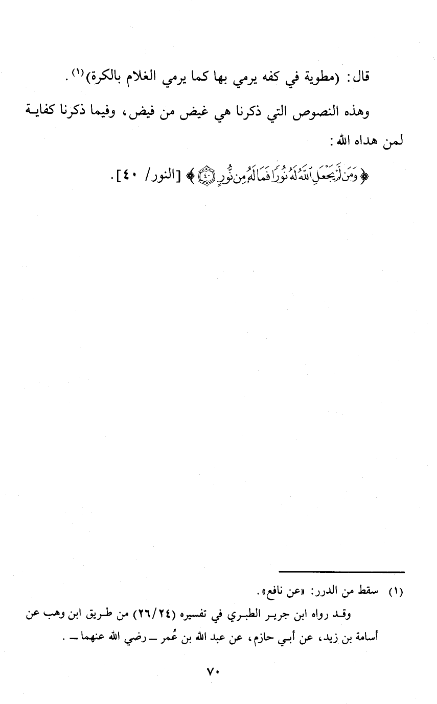 وهذه النصوص التي ذكرنا هي غيض من فيض، وفيما ذكرنا كفاية لمن هداه الله. {وَمَنْ لَمْ يَجْعَلِ اللَّهُ لَهُ نُورًا فَمَا لَهُ مِنْ نُورٍ} [النور: 40] .