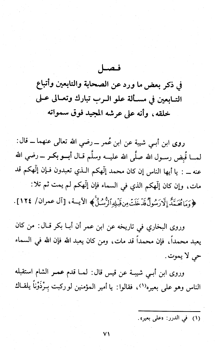 التابعين في مسألة علو الرب تبارك وتعالى على