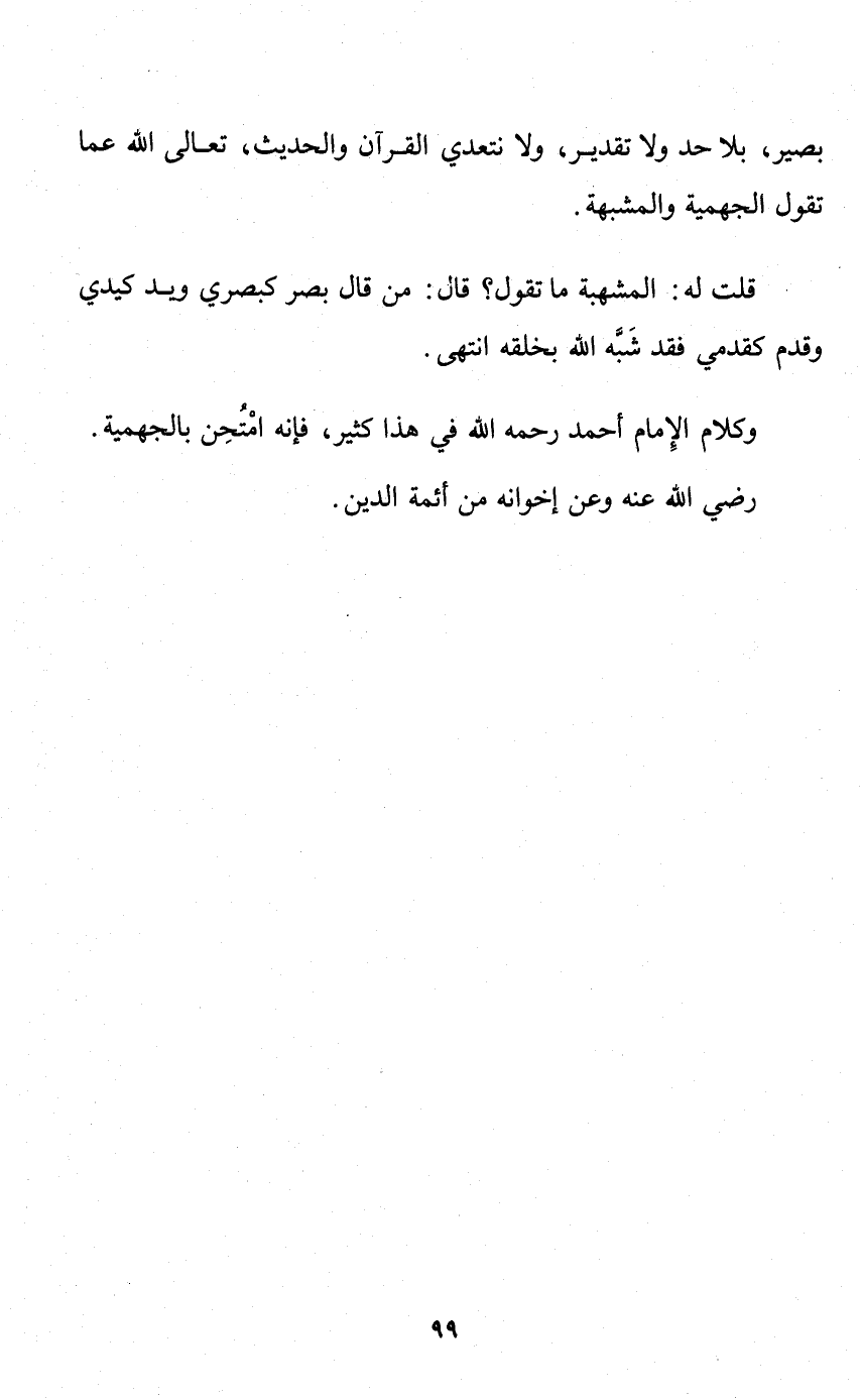 قال: من قال بصر كبصري ويد كيدي وقدم كقدمي - فقد شبه الله بخلقه. انتهى.