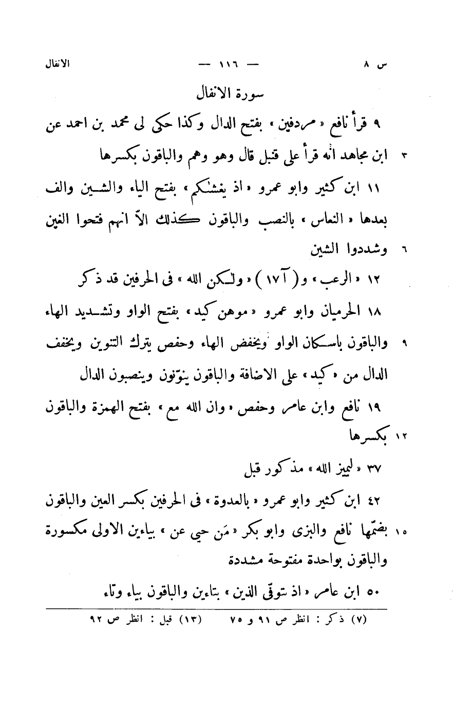 قَرَأَ نَافِع {مُردفِينَ} بِفَتْح الدَّال وَكَذَا حكى لي مُحَمَّد بن احْمَد عَن ابْن مُجَاهِد انه قَرَأَ على قنبل قَالَ وَهُوَ وهم وَالْبَاقُونَ بِكَسْرِهَا