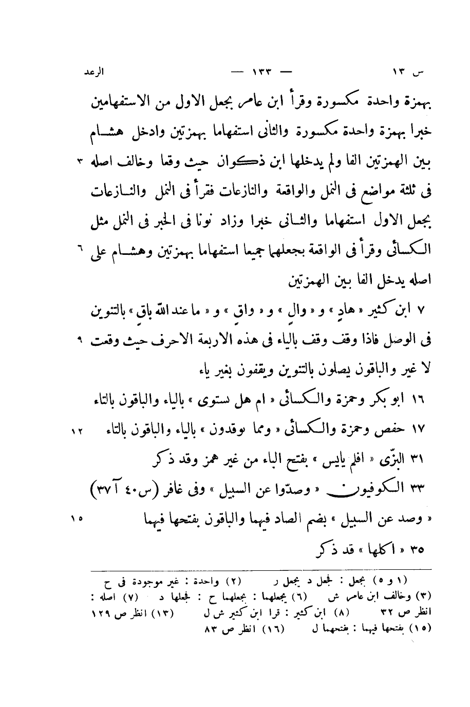 الْكُوفِيُّونَ {وصدوا عَن السَّبِيل} وَفِي غَافِر {وَصد عَن السَّبِيل} بِضَم الصَّاد فيهمَا وَالْبَاقُونَ بِفَتْحِهَا فيهمَا