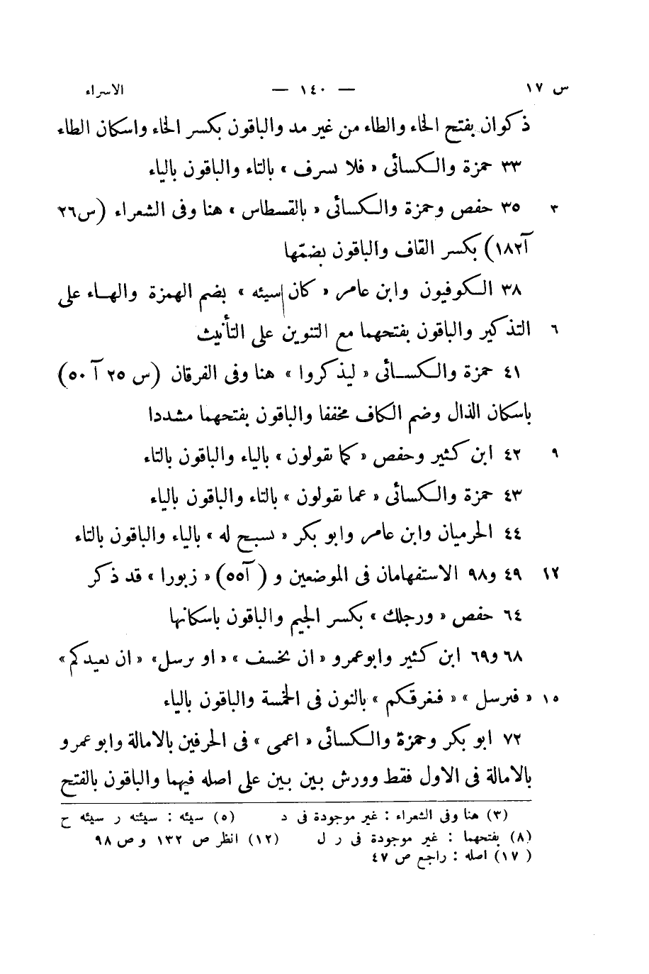 حَمْزَة والكسائى / فَلَا تسرف / بِالتَّاءِ وَالْبَاقُونَ بِالْيَاءِ