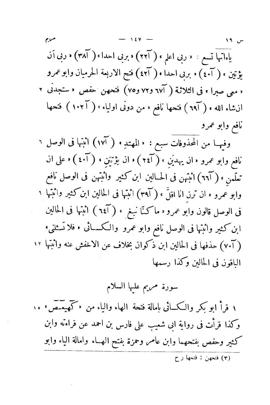 قَرَأَ ابو بكر وَالْكسَائِيّ بامالة فَتْحة الْهَاء وَالْيَاء من {كهيعص} وَكَذَا قَرَأت فِي رِوَايَة ابي شُعَيْب على فَارس بن احْمَد عَن قِرَاءَته وَابْن كثير وَحَفْص بفتحهما وَابْن عَامر وَحَمْزَة بِفَتْح الْهَاء وامالة الْيَاء وابو