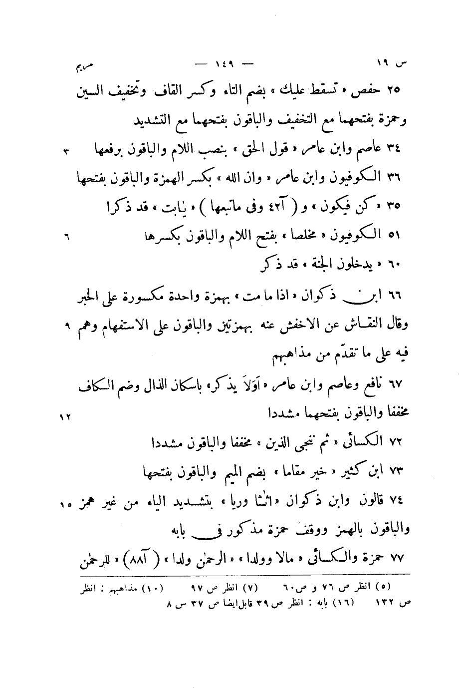 قالون وَابْن ذكْوَان / اثاثا وريا / بتَشْديد الْيَاء من غير همز وَالْبَاقُونَ بِالْهَمْز ووقف حَمْزَة مَذْكُور فِي بَابه