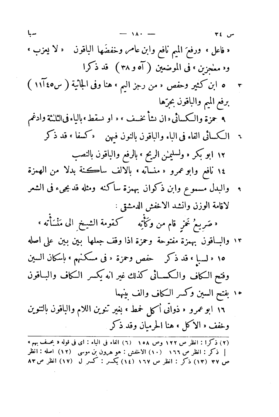 وَالْبَاقُونَ بِهَمْزَة مَفْتُوحَة وَحَمْزَة اذا وقف جعلهَا بَين بَين على اصله {لسبإ} قد ذكر حَفْص وَحَمْزَة {فِي مسكنهم} باسكان السِّين وَفتح الْكَاف وَالْكسَائِيّ كَذَلِك غير انه يكسر الْكَاف وَالْبَاقُونَ بِفَتْح السِّين وَكسر الْكَاف والف بَينهمَا