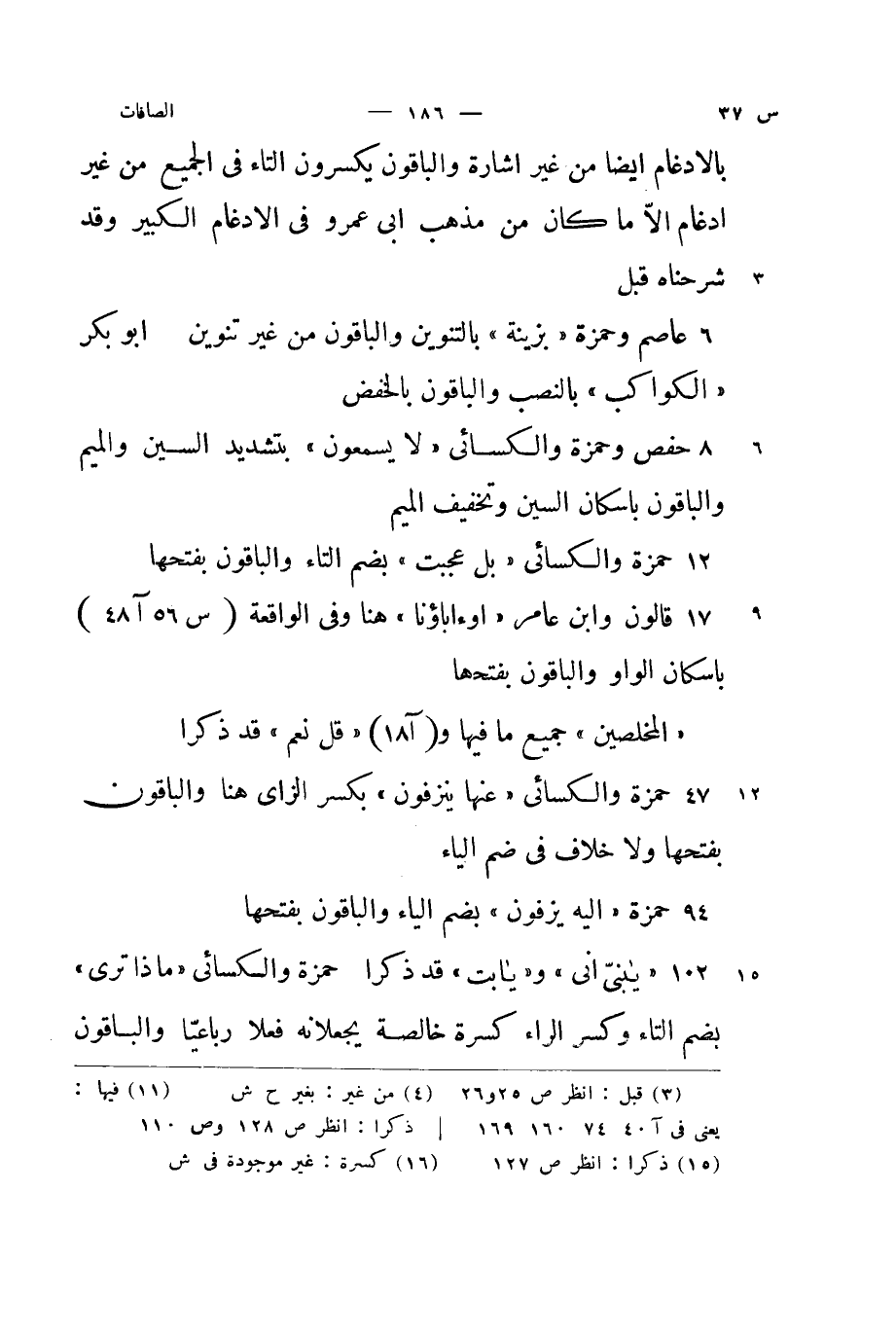 حَمْزَة {إِلَيْهِ يزفون} بِضَم الْيَاء وَالْبَاقُونَ بِفَتْحِهَا