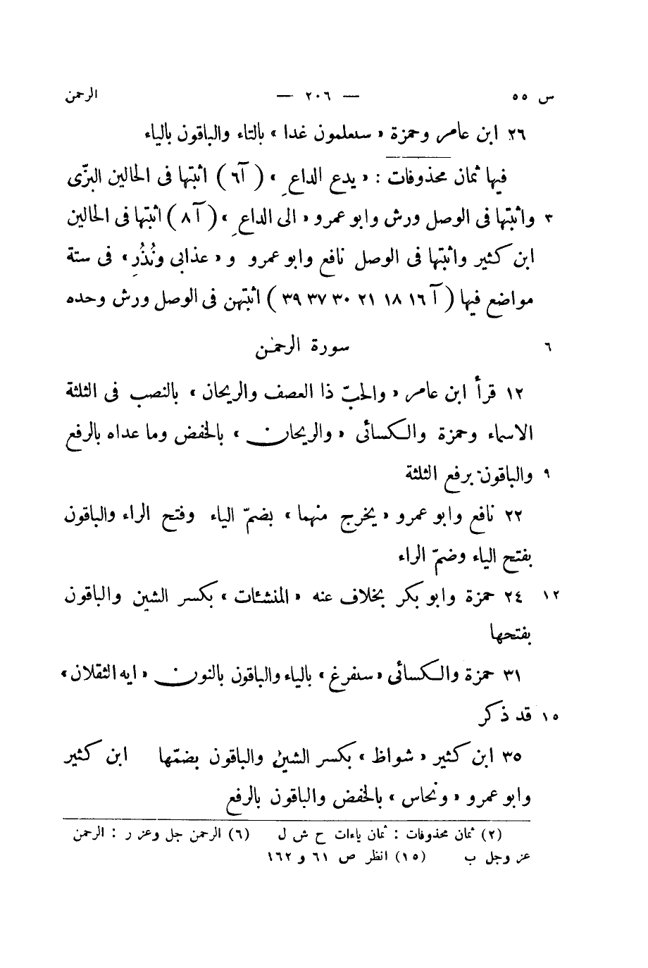 حَمْزَة وَالْكسَائِيّ / سيفرغ / بِالْيَاءِ وَالْبَاقُونَ بالنُّون / ايه الثَّقَلَان / قد ذكر