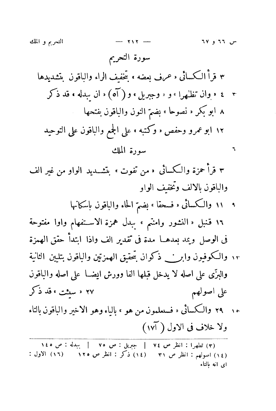 قَرَأَ الْكسَائي {عرف بعضه} بتَخْفِيف الرَّاء وَالْبَاقُونَ بتشديدها