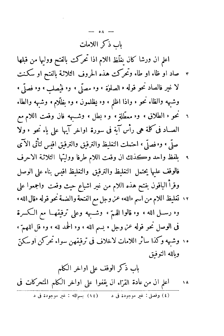 اعْلَم ان من عَادَة الْقُرَّاء ان يقفوا على اواخر الْكَلم المتحركات فِي 59