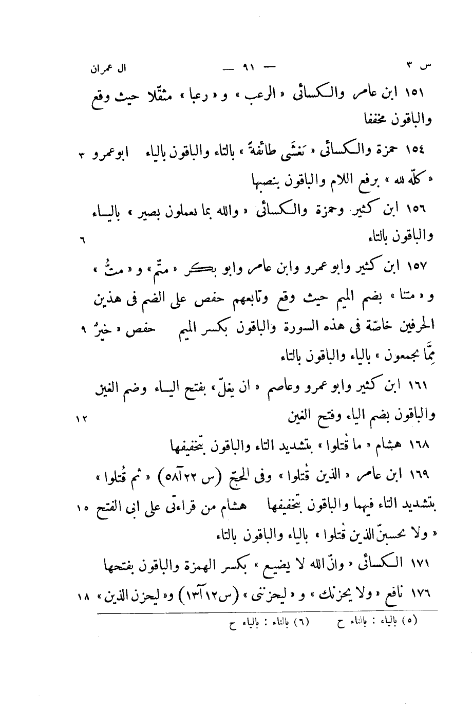 حَمْزَة وَالْكسَائِيّ / تغشى طَائِفَة / بِالتَّاءِ وَالْبَاقُونَ بِالْيَاءِ ابو عَمْرو {كُله لله} بِرَفْع اللَّام وَالْبَاقُونَ بنصبها