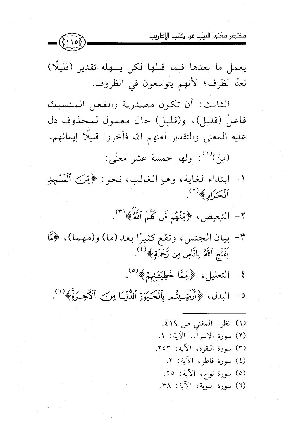 1- ابتداء الغاية، وهو الغالب، نحو: {مِنَ الْمَسْجِدِ الْحَرَامِ} 2.