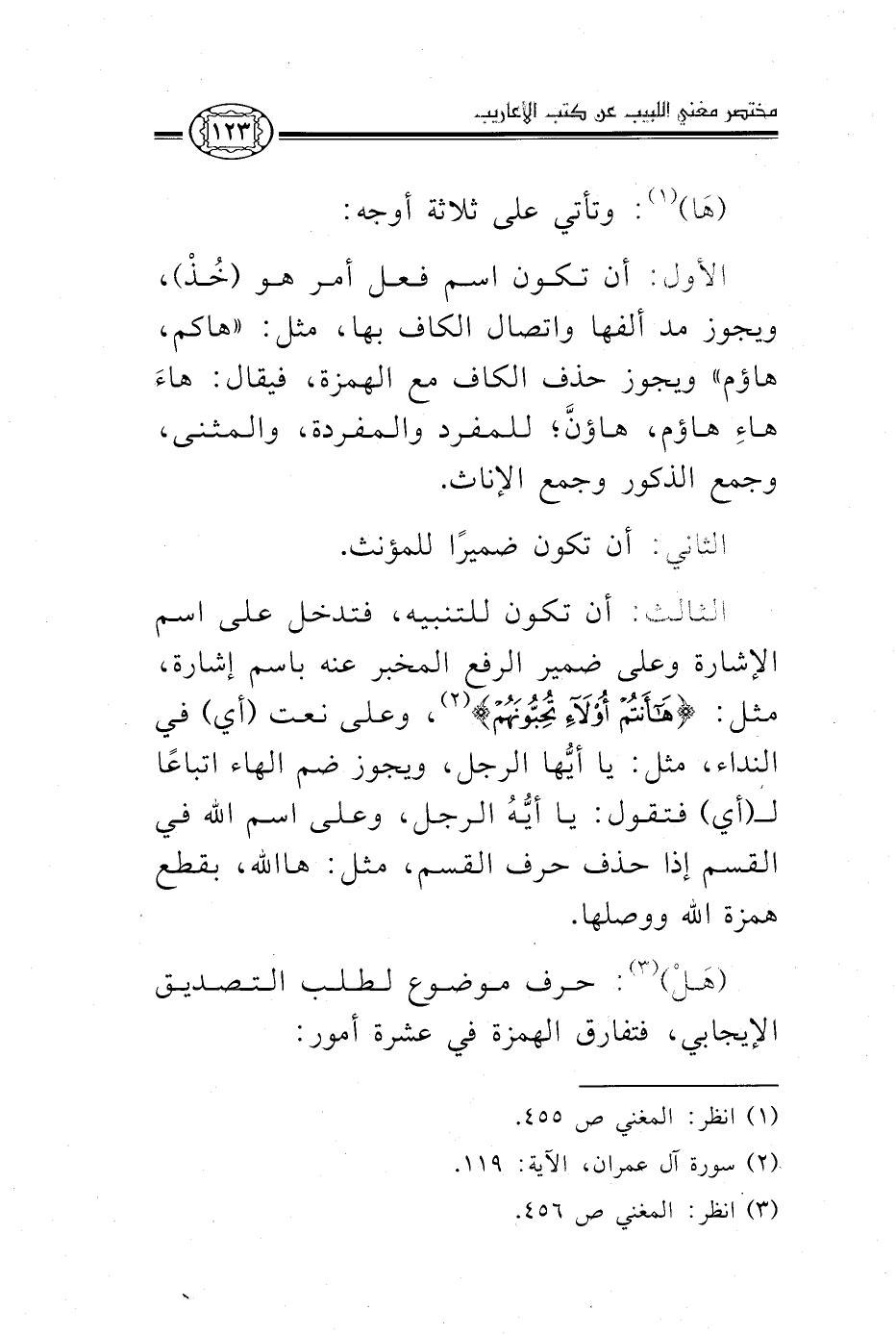 "هل" 3: حرف موضوع لطلب التصديق الإيجابي، فتفارق الهمزة في عشرة أمور: