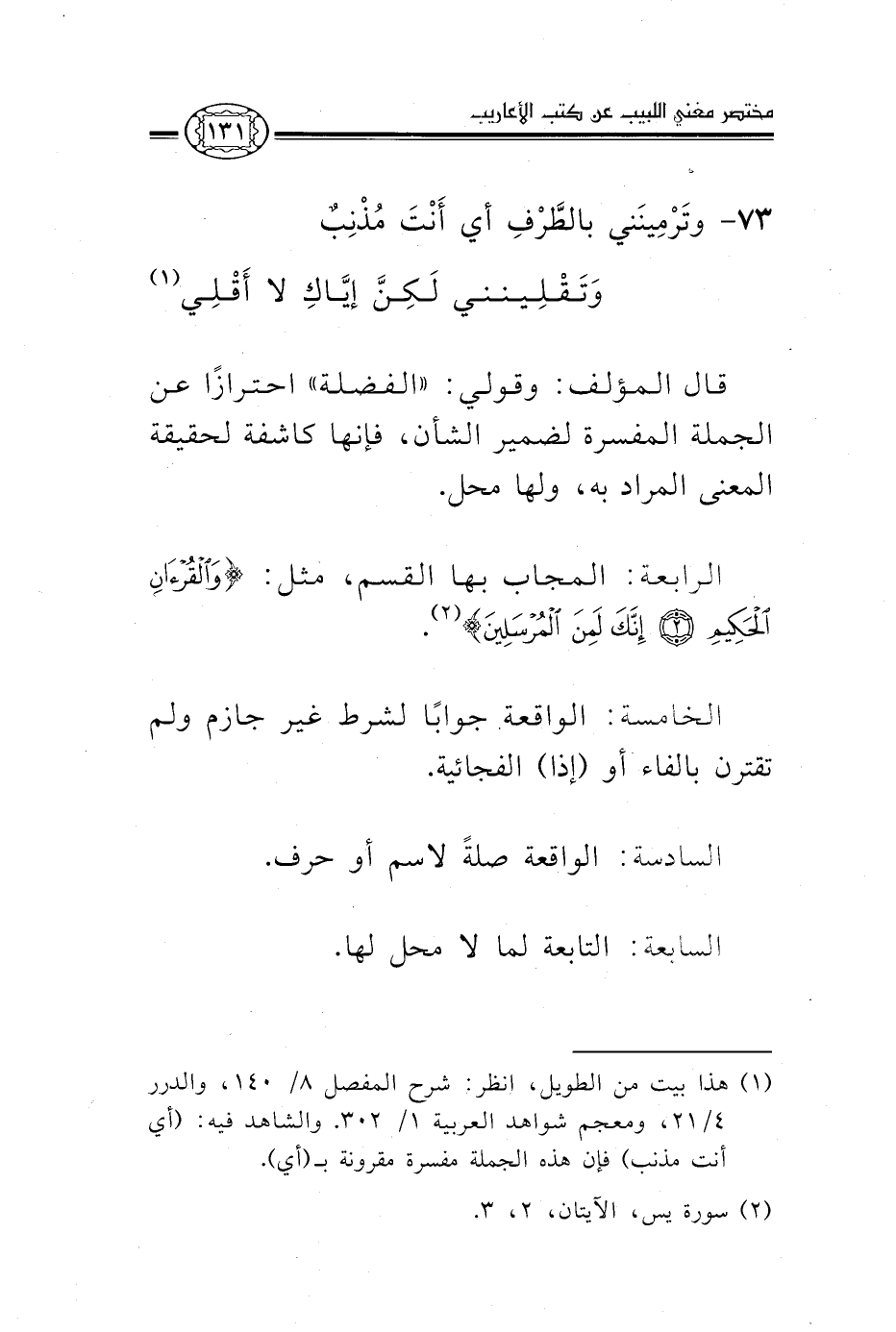 الرابعة: المجاب بها القسم، مثل: {وَالْقُرْآنِ الْحَكِيمِ، إِنَّكَ لَمِنَ الْمُرْسَلِينَ} 2.