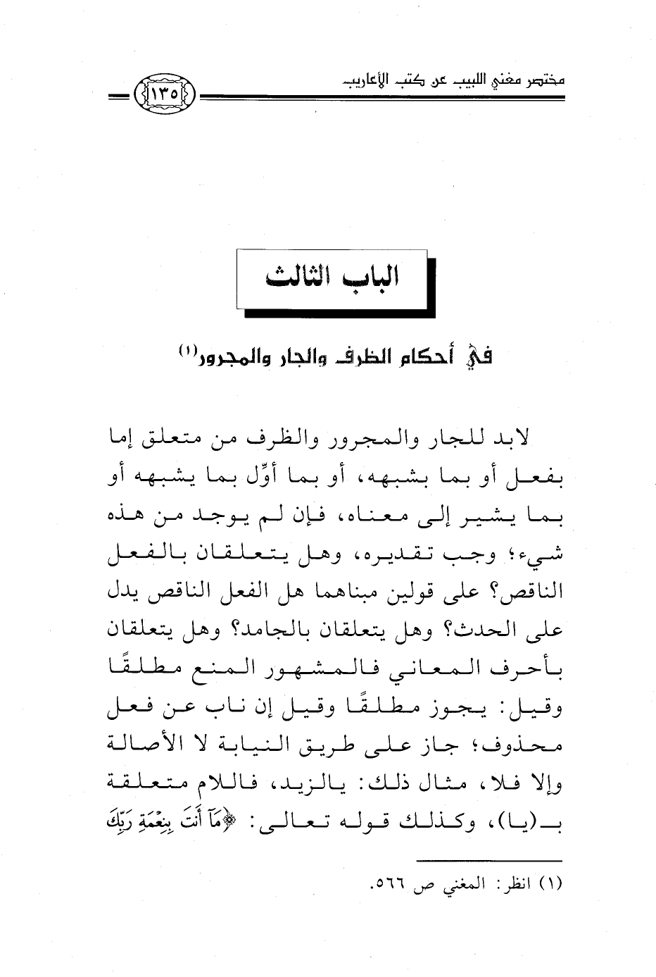 الباب الثالث في أحكام الظرف والجار والمجرور
