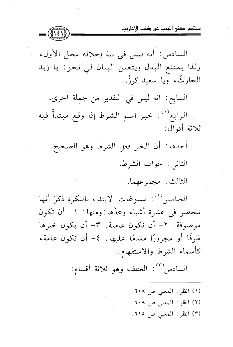 1 انظر: المغني ص608.