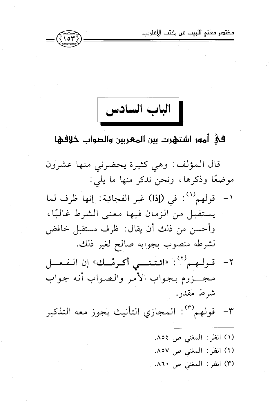 الباب السادس: في أمور اشتهرت بين المعربين والصواب خلافها.