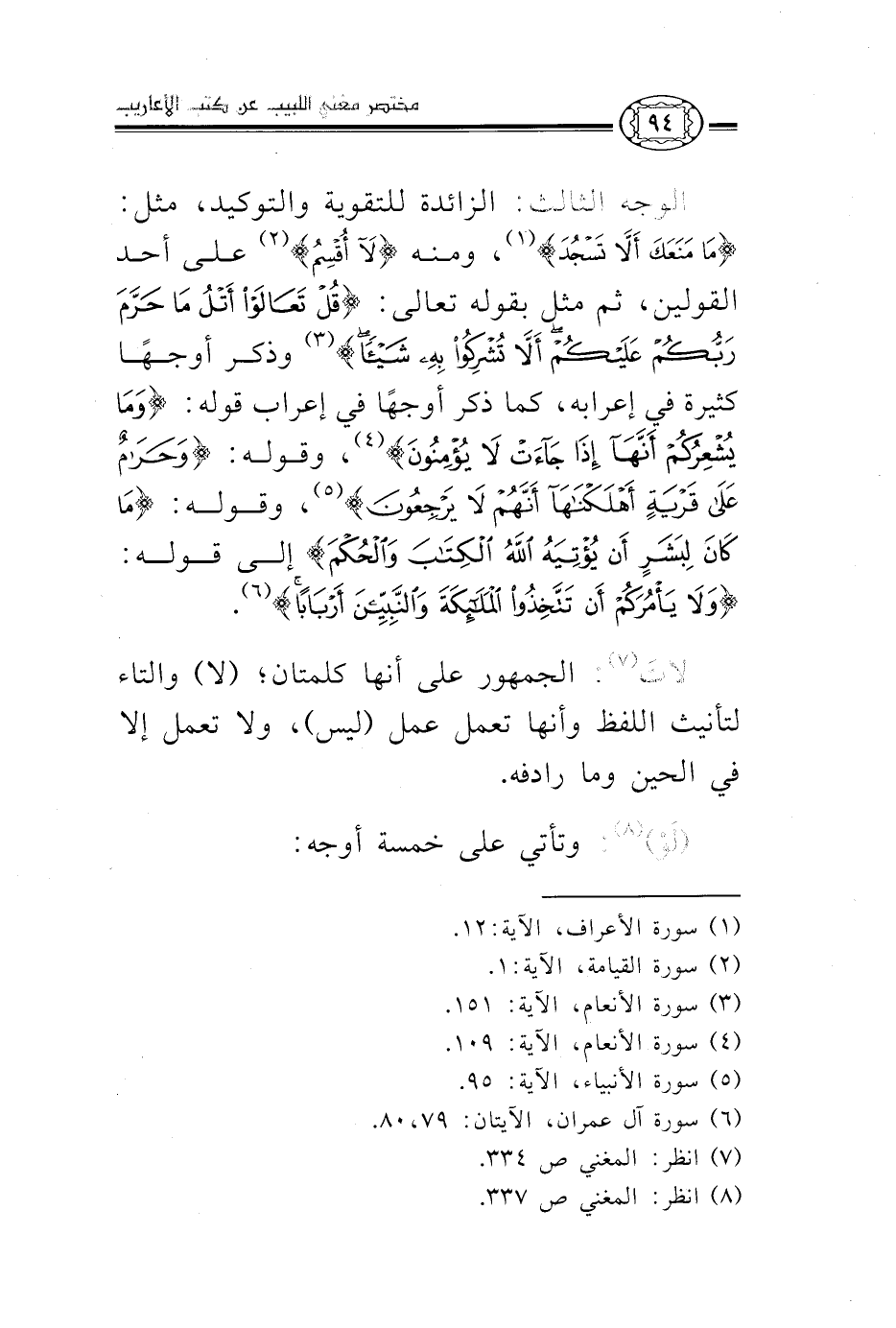 7 انظر: المغني ص334.