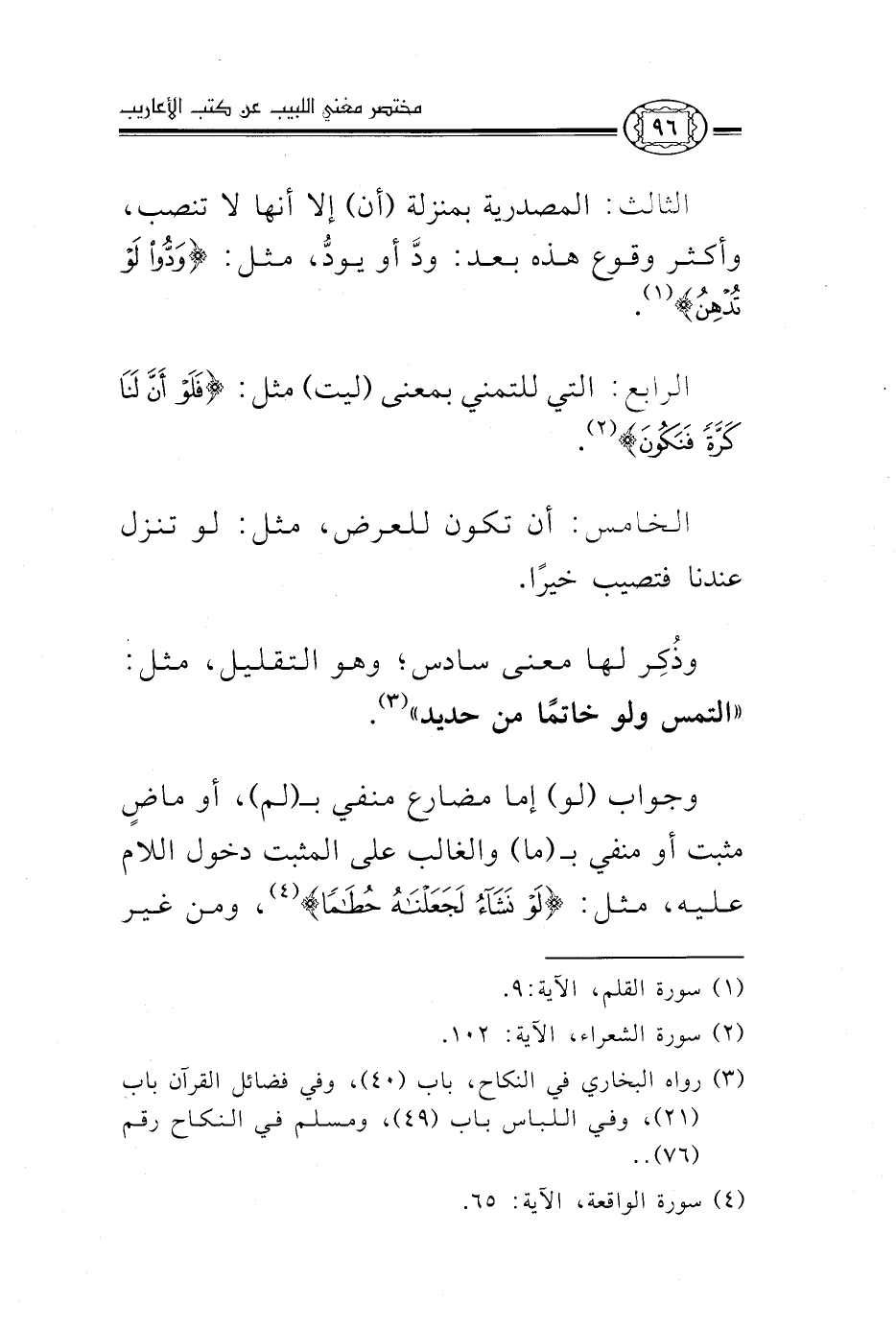 الثالث: المصدرية بمنزلة أن إلا أنها لا تنصب، وأكثر وقوع هذه بعد: ود أو يود، مثل: {وَدُّوا لَوْ تُدْهِنُ فَيُدْهِنُونَ} 1.