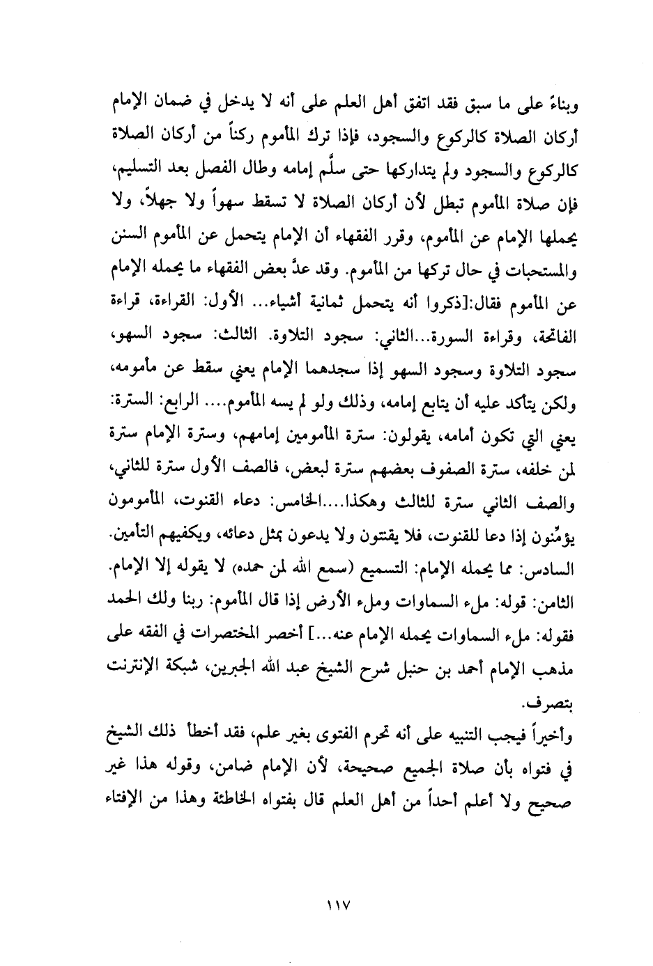 وأخيراً فيجب التنبيه على أنه تحرم الفتوى بغير علم، فقد أخطأ ذلك الشيخ في فتواه بأن صلاة الجميع صحيحة، لأن الإمام ضامن، وقوله هذا غير صحيح ولا أعلم أحداً من أهل العلم قال بفتواه الخاطئة وهذا من الإفتاء
