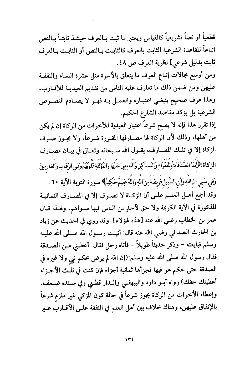 وقد أجمع أهل العلم على أن الزكاة لا تصرف إلا في المصارف الثمانية المذكورة في الآية الكريمة ولا حق لأحدٍ من الناس فيها سواهم، ولهذا قال عمر بن الخطاب رضي الله عنه: [هذه لهؤلاء]. وقد روي في الحديث عن زياد بن الحارث الصدائي رضي الله عنه قال: أتيت رسول الله صلى الله عليه وسلم فبايعته - وذكر حديثاً طويلاً - فأتاه رجل فقال: أعطني من الصدقة فقال رسول الله صلى الله عليه وسلم: (إن الله لم يرض بحكم نبيٍ ولا غيره في الصدقة حتى حكم هو فيها فجزأها ثمانية أجزاء فإن كنت في تلك الأجزاء أعطيتك حقك) رواه أبو داود والبيهقي والدارقطني وفي سنده ضعف. وإعطاء الأخوات من الزكاة يجوز شرعاً في حالة كون المزكي غير ملزمٍ شرعاً بالإنفاق عليهن، وهناك خلاف بين أهل العلم في النفقة على الأقارب غير