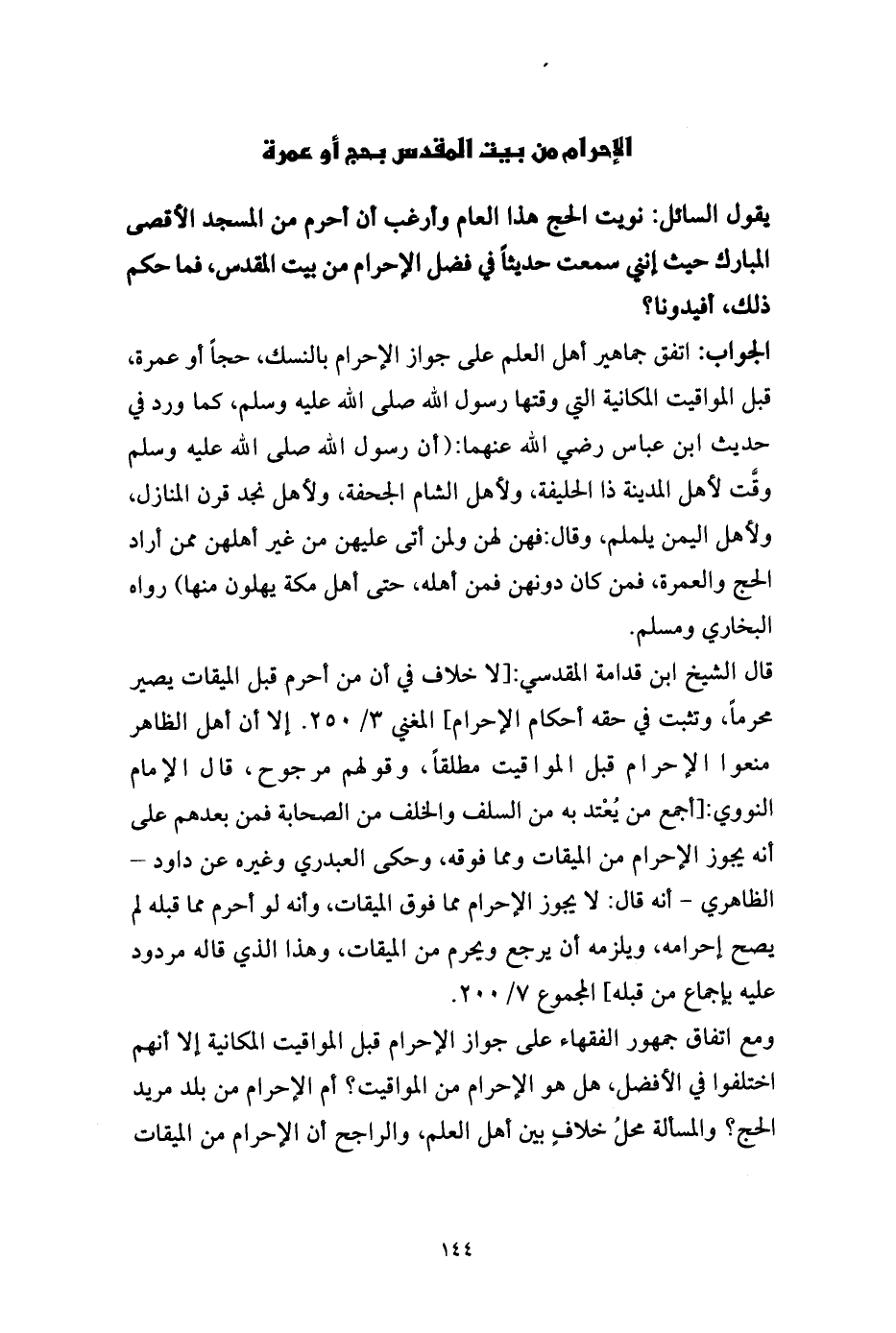الإحرام من بيت المقدس بحج أو عمرة